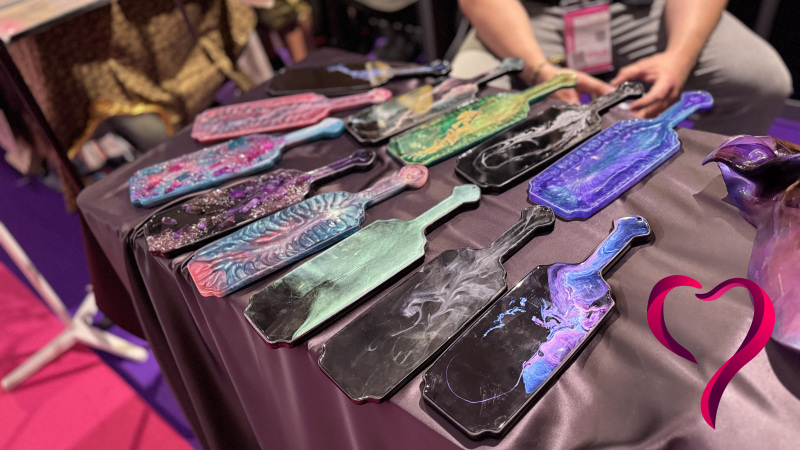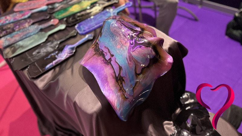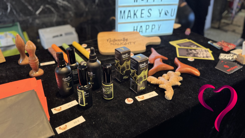Naturally Naughty stuck to their line: classic sprays, oils, and natural aids—but this year they added more wooden toys to their range. Vilain Garcon built their entire promo on a robust aesthetic: punishment collars (with internal spikes—ouch), crowns, heavy rubber accessories, and even a practical mobile phone case for kinky parties (which was a real hit). In general, BDSM fashion went a step further.