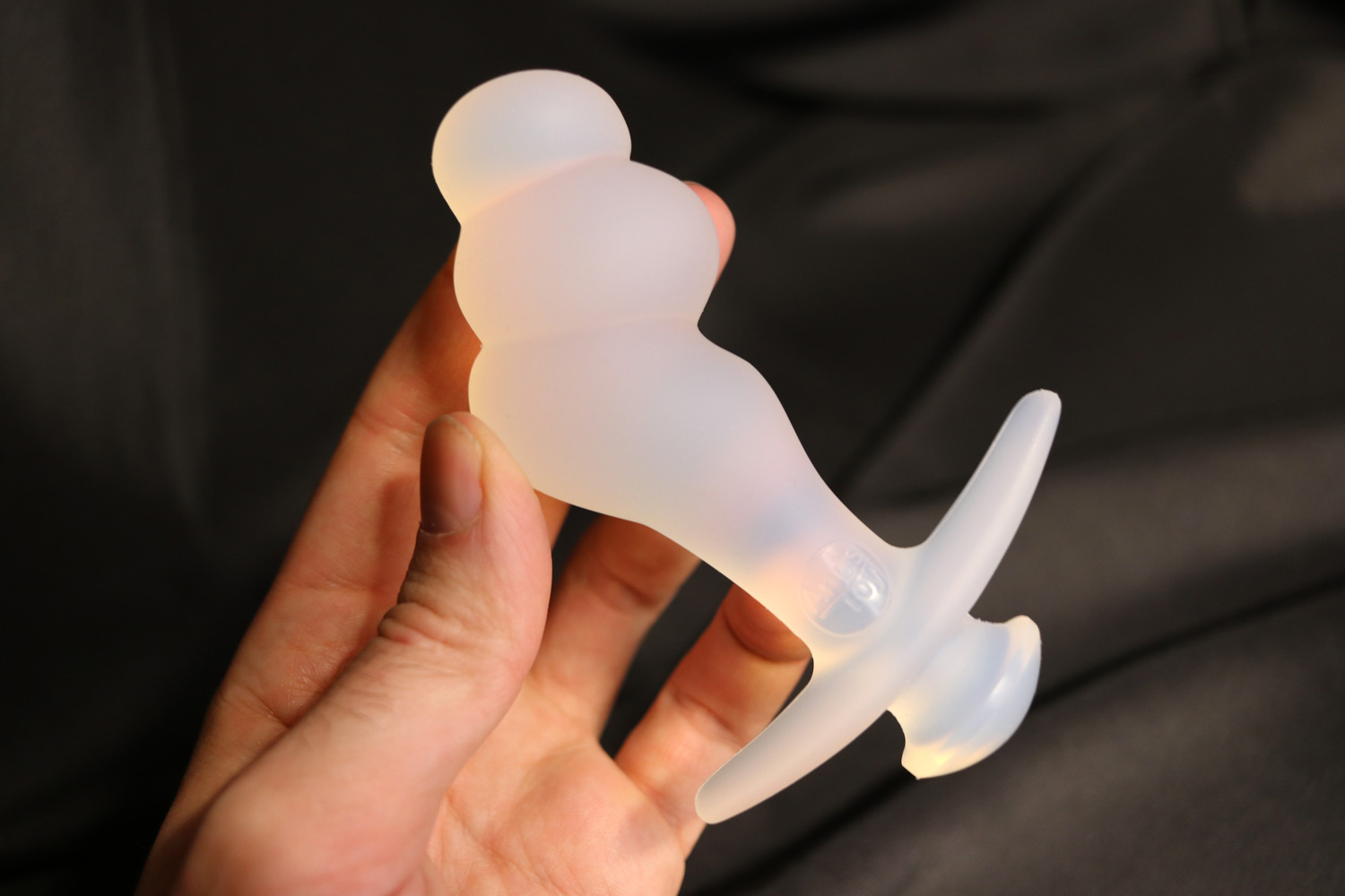 A fully silicone anal plug with a suitably shaped tip (made up of 3 imaginary bubbles) for just the right shape, firmness and direction to tease the prostate.
